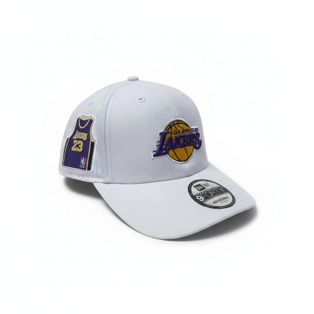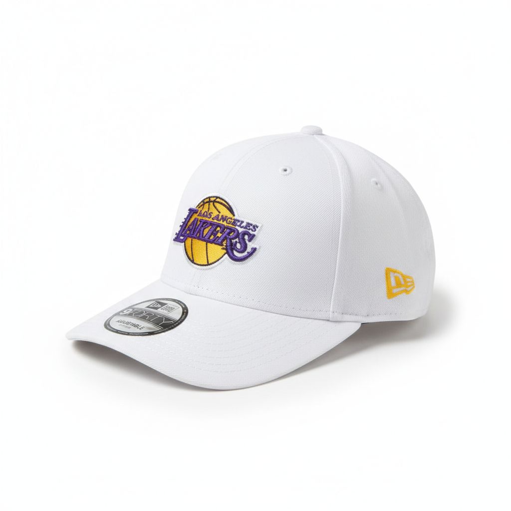 New Era Los Angeles Lakers NBA Patch White 9FORTY A-Frame Adjustable Cap.