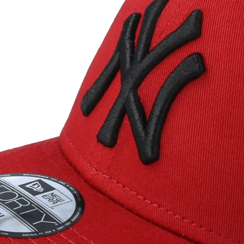 Team: The front features the iconic interlocking "NY" logo for the New York Yankees in a Dark Red/Black/Red Adjustable